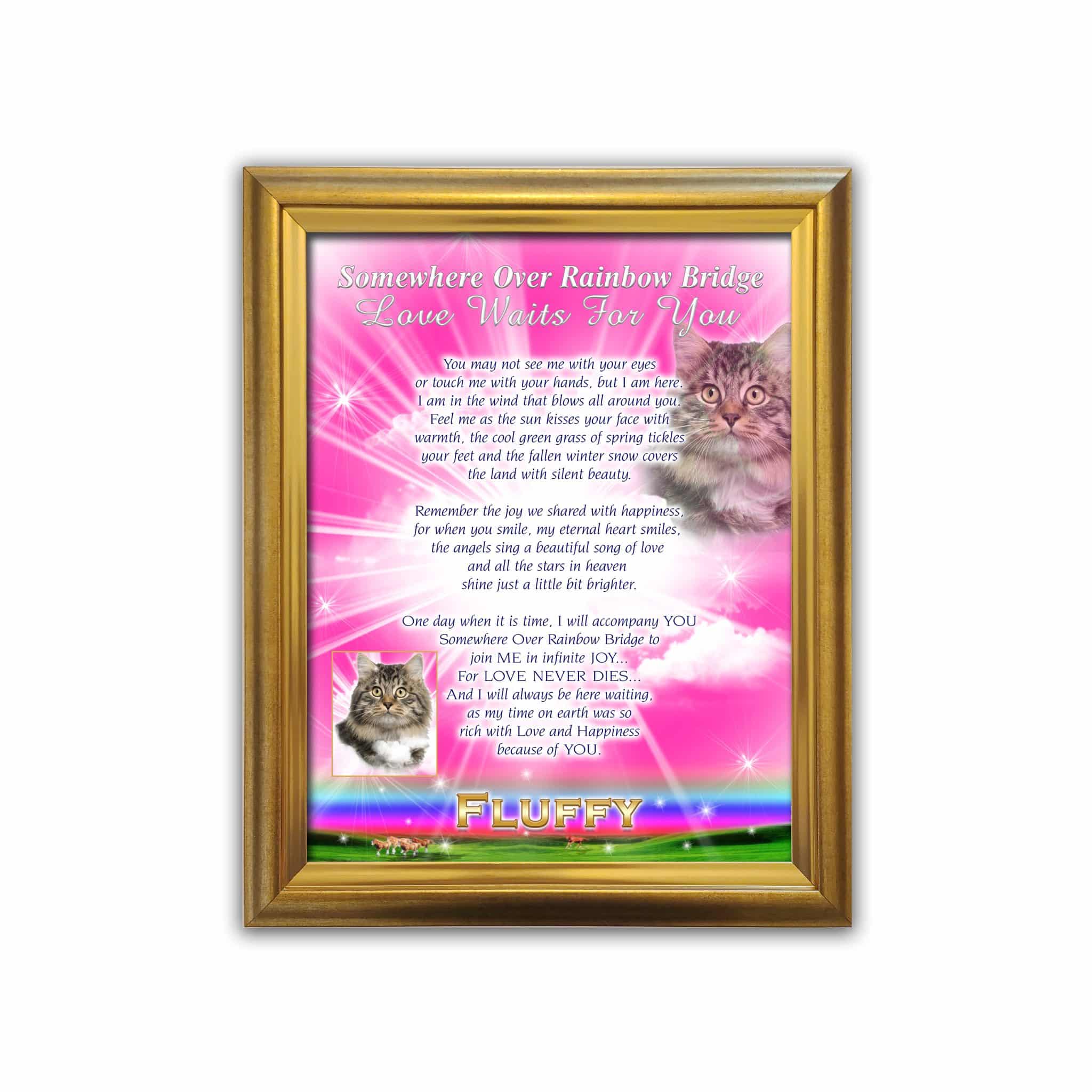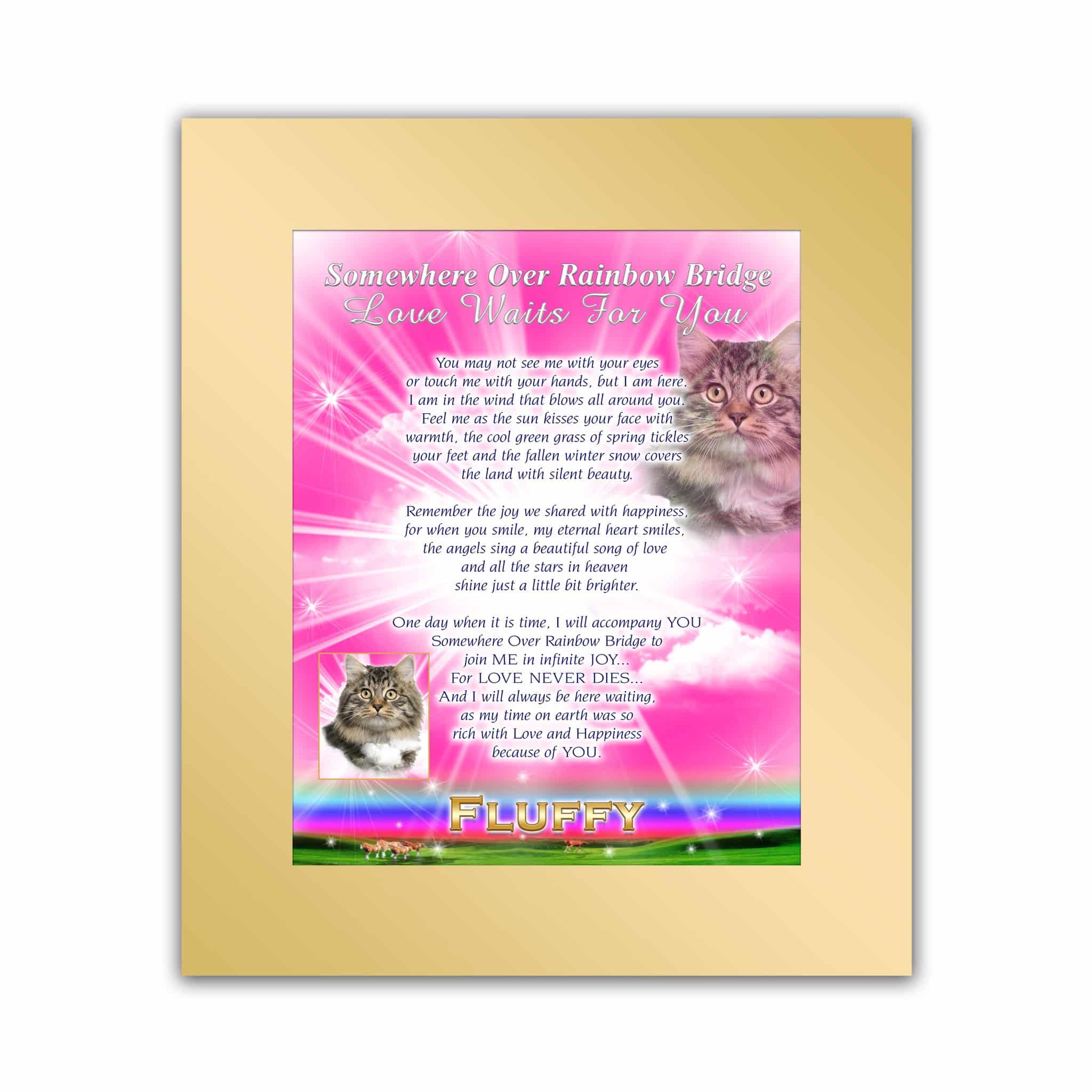After placing your order, our graphic designer will get working on putting your image in the Rainbow Pink Message. Your Message is packed in a Personalized AnimaLove Box. This beautiful box is our gift to you! A special place to put pictures and/or mementos of your beloved for safe keeping. Messages are backed with 3mm Black Styrene for Easel display. Shipped in 7 to 10 business days.
